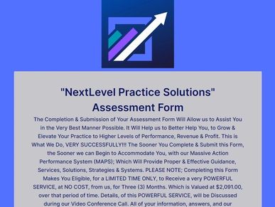 Once You complete our Practice Assessment Form, we can then appropriately, accurately, and effectively suggest the most potent system of tools, strategies, and services to remedy your pain points and achieve your Next Level goals, with Tremendous Success.